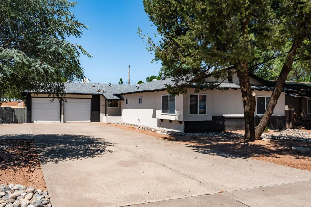Completely remodeled 3-bedroom, 1.75-bath home in Albuquerque's Northeast Heights! Updates include new roof, stucco, paint, water heater, electrical panel, HVAC, windows, and flooring throughout. The stylish kitchen features new soft closed cabinets, island, and stainless-steel LG appliances--including washer & dryer. Enjoy two living spaces including a fireplace and plantation shutters. Stay comfortable year-round with refrigerated air! The landscaped backyard offers privacy fencing for outdoor living, plus a 2-car garage for convenience. Centrally located near shopping and restaurants, this move-in ready home blends modern updates with everyday comfort.