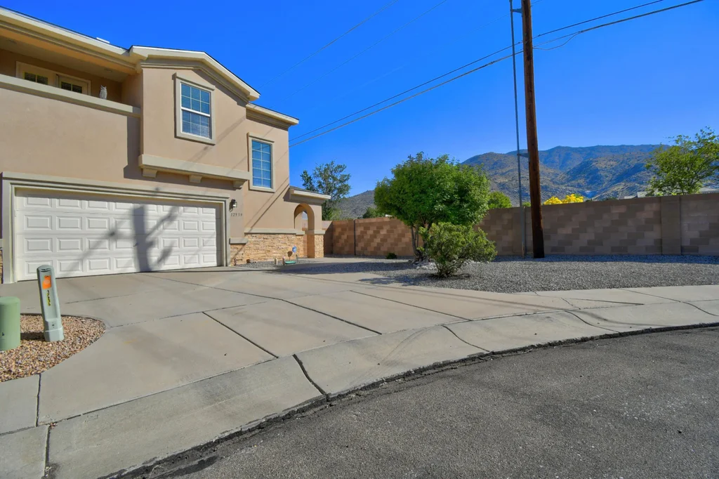 Beautiful Foothills Townhome! This meticulously maintained 3-bed, 3-bath end-unit townhouse is perfectly situated in the highly desirable NE Heights Foothills neighborhood. Enjoy quick access to Tramway, Sandia Labs, restaurants, shops & stunning mountain trails. The spacious primary suite features 2 walk-in closets, private balcony w/ incredible mountain views & a luxurious bathroom with double sinks, a separate garden tub & shower. The bright open kitchen includes all appliances & a reverse osmosis water filter, flowing seamlessly into the cozy living area with a fireplace--perfect for relaxing evenings. Additional highlights include 240 volt in garage, roof 2020, a relaxing backyard hot tub, a well-maintained storage shed & beautifully landscaped grounds at the end of the cul-de-sac.