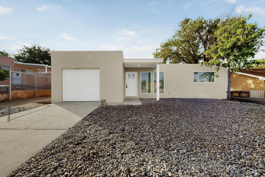 This home is almost like new construction. List of New items: TPO Roof, windows, stucco, HVAC, water heater, Heating/Refrigerated air combo unit, Interior & Exterior doors, Garage door & opener, Interior paint, flooring, bathrooms, kitchen, lights and appliances. Absolutely gorgeous remodel! 4BR, 2 Bathrooms, 1 car garage and large yard. Move in ready.
