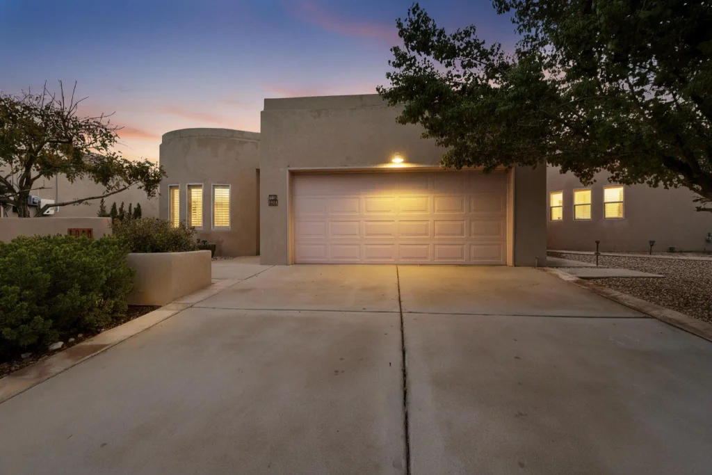 Impeccable Strosnider home in Volcano Vista School District with stunning upgrades and breathtaking Sandia views! This 3-bedroom, 2-bath gem features an updated oversized 3/4 shower, spacious primary suite with backyard access, jetted tub, high ceilings, wood laminate floors, plantation shutters, granite countertops, breakfast nook, eat-at bar, and an open floor plan. The beautifully landscaped front and backyard oasis includes a pergola, BBQ bar, fountain pot, firepit, flagstone patio, and covered back patio. Low-maintenance yard with auto drip system and lighting. No HOA or PID! Some furniture may convey with an acceptable offer.