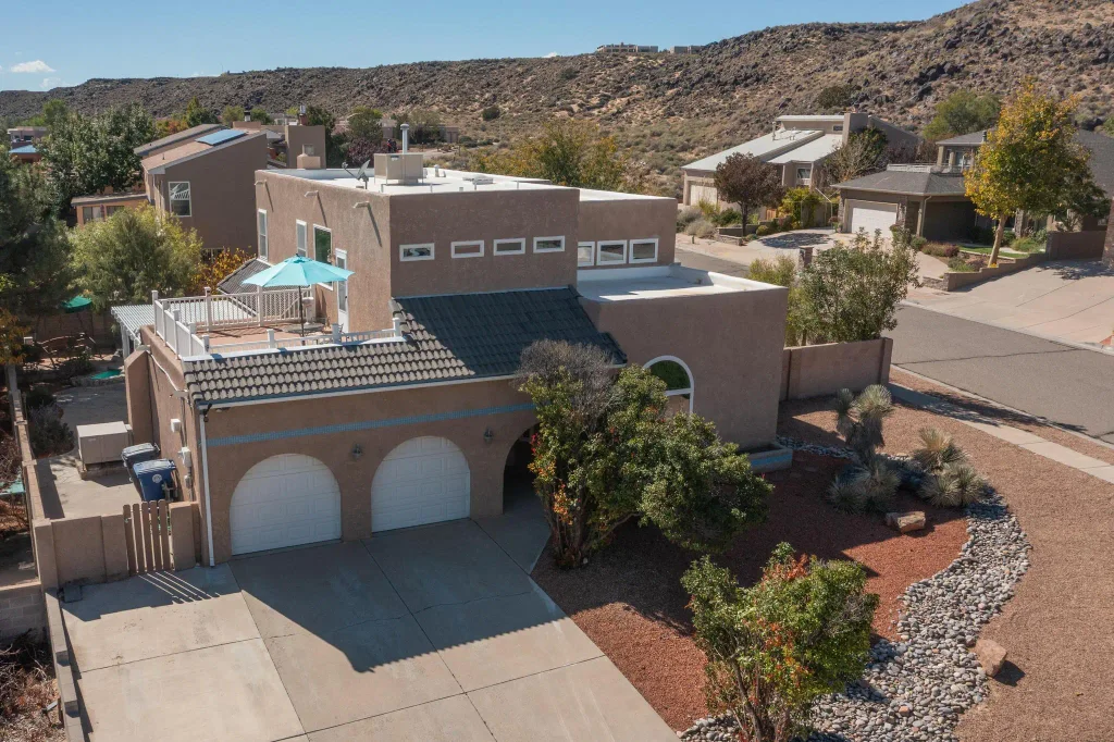 *Open Houses Sat 10/18 & Sun 10/19, 11-2 PM.* A Must-See Gem in One of NW Albuquerque's Most Sought-After Neighborhoods - No HOA! Nestled in the heart of a highly desirable area, this thoughtfully designed home features an open floor plan and expansive windows that welcome the space with natural light. Enjoy seamless indoor-outdoor living with direct access to a serene backyard patio complete with a hot tub & fountain--ideal for entertaining or unwinding in privacy. The spacious layout flows effortlessly through the kitchen, living, family, & dining areas, creating a bright, welcoming atmosphere throughout the home. This 3 BED, 3 BA home is beautifully updated & has it all. Excellent views from the primary suite balcony, corner lot with RV pad, family friendly neighborhood & much more!