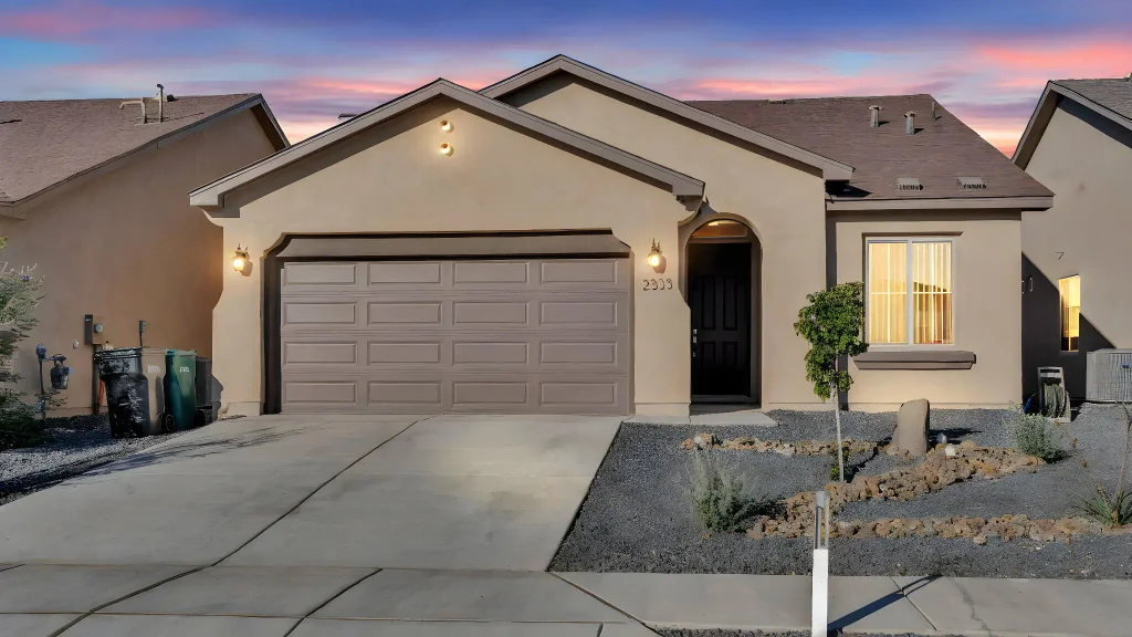 This beautiful ONE YEAR OLD home features an open floor plan with a spacious great room, dining area, and modern kitchen with island and pantry. The owner's suite includes a walk-in closet and private bath. Enjoy energy-efficient construction, a covered patio, and a 2-car garage. Located in the desirable Rio Rancho community near trails, parks, and top schools--modern living with comfort and style in every detail.The owners have added pavement and gravel in the backyard. Best deal in the area! Schedule your tour today!