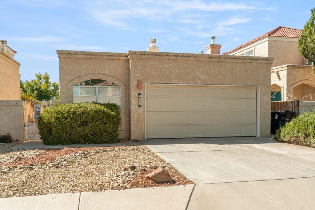 Vaulted ceilings and clerestory windows fill this charming single-level patio home with natural light. On a quiet cul-de-sac in desirable Mission Ridge, this move-in ready home offers a new TPO roof, skylights, fresh paint, and newer furnace and water heater (2018). The well-designed floor plan includes a sunny breakfast nook, dining area, and flexible third room ideal for an office or guest room. Enjoy a private, low-maintenance backyard with water-wise turf and a covered patio with gas hookup--perfect for year-round relaxing or grilling. The finished two-car garage provides great storage. Nearby Mariposa Basin Park with trails, playground, sport fields and duck pond, easy Bosque access, delicious eateries like M'Tucci's, Hannah & Nate's, and shopping/services make it an ideal location!