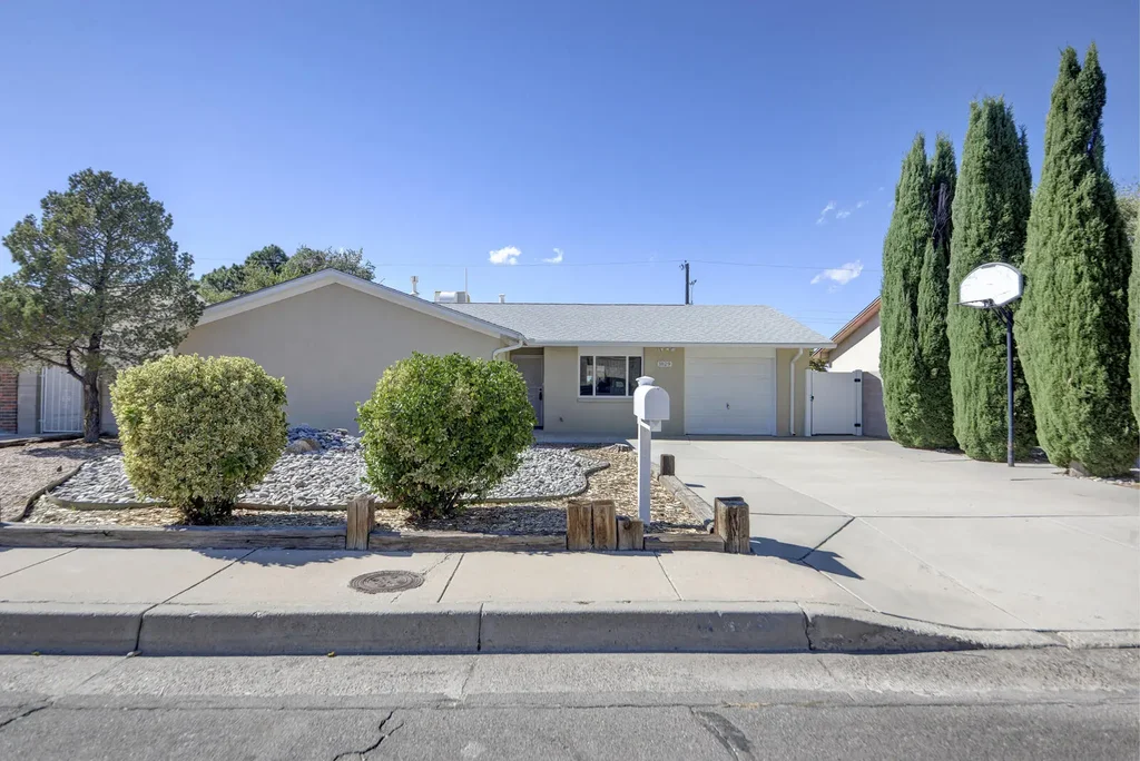 Step into this Super Cute Home Freshly Painted with Open Floor Plan. Pretty Wood Look Vinyl Plank Flooring in Living Room and Bedrooms with Tile in Kitchen and Both Baths. Big, Open Kitchen with New Stainless Steel Appliances, Plenty of room for an Island and Large Dining Table and Big Patio Door to a Good Sized Backyard & Lrg Storage. Check out the Size of the Primary Suite with Bathroom w/Shower and Walk in Closet. The 2 Extra Bedrooms have nice sized Closets as well. Big, Dbl Pane Windows Thru-out for Tons of LIght and Sunsets. Check out the Size of the Garage - 12 Wide and 28 Ft Long w/Garage Door Opener. This House Used to Have a Brick Facade but Now Has a Pretty Stucco Finish w/ Pitched, Shingle Roof.