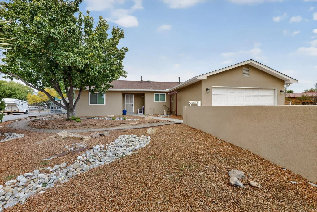 Country charm meets modern comfort on this .75-acre cul-de-sac lot with picturesque views of Tome Hill. Mature trees, lush landscaping & a xeriscaped yard create a serene retreat. Some recent upgrades include heating/cooling system, windows, stucco, water heater & a beautifully remodeled kitchen with granite countertops & ample cabinet space. Inside, enjoy vaulted ceilings, a solar tube for natural light, and laminate wood flooring in the the main areas & primary suite. Relax on the beautifully updated porch while soaking in the tranquility of the private backyard. Outdoors is ideal for hobby farming or equestrian living with pipe fencing, a well-designed corral, hay barn, two covered stalls & a turnout area. Don't miss this unique opportunity for country living!